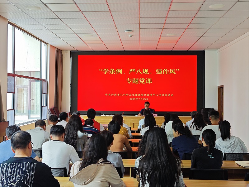 省健康宣教中心党支部开展“学条例、 严八规、强作风”专题党课学习发表时间:2025-07-29 11:25 2025年7月25日下午,省健康宣教中心主任商开世以 “学条例、严‘八规’、强作风”为主题,为白马东区党建联席兼职委员成员单位的党员代表,中心全体党员、中层及以上领导干部、青年理论学习小组成员讲授专题党课。